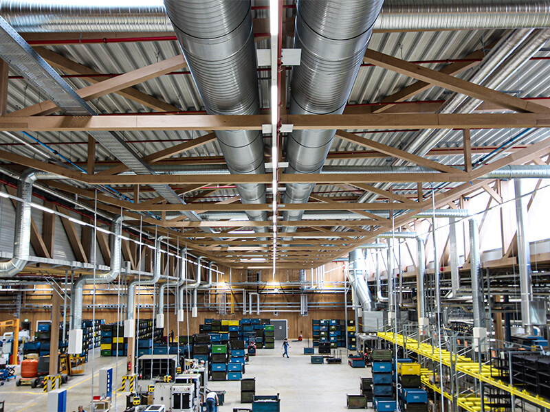 Air-cooled heat pumps with propane (R290) and chillers with water or brine as the heat transfer medium are particularly suitable for the correct air conditioning of production and industrial halls. Rising temperatures in summer and long-lasting heat waves increasingly require the subsequent installation of a cooling system. SKADEC has the right chiller for these applications and also suitable air recirculation duct units in its product portfolio. Preferably we use natural refrigerants as well as the air-cooled propane (R290) heat pump. Software solutions for the higher-level control of the entire system including the duct units round off our service. Here, eligible system concepts with natural refrigerants offer a cost-effective and future-proof alternative to applications with HFC refrigerants.