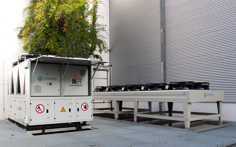 Chiller with 320 kW cooling capacity and free cooler with 295 kW cooling capacity
