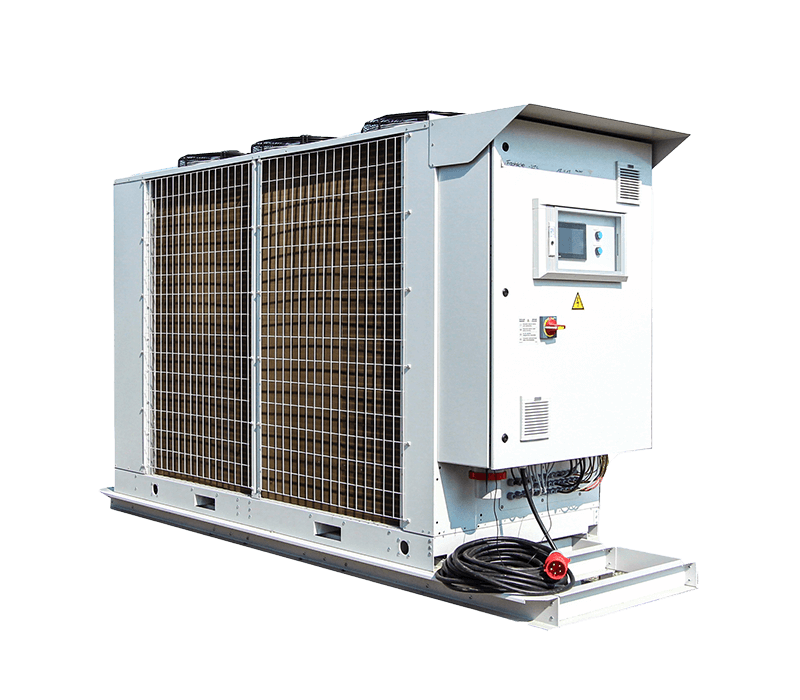 Thanks to its slim design, the 44 kW rental chiller is the optimum choice in its size range. It has a sturdy frame with forklift pockets, ensuring optimum flexibility at all times. In addition, the chiller has a transport frame with louvre protection and thus offers the greatest possible protection.