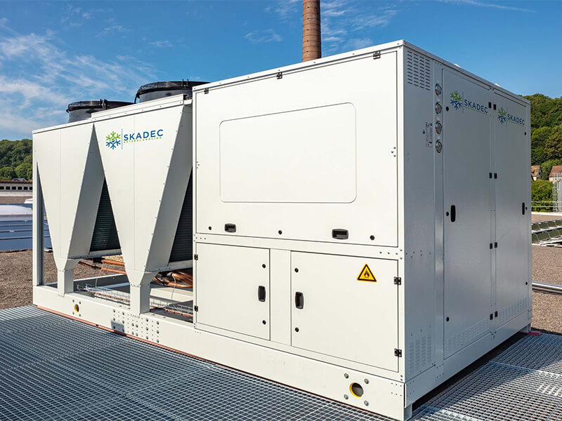 Dėl didelio prekybos centrų vėsinimo poreikio ir su tuo susijusio energijos suvartojimo ypatingas dėmesys skiriamas efektyviam ir perspektyviam oro kondicionavimui. Dėl specialių šaltnešių pasirinkimo kriterijų ir atsižvelgiant į būsimą šaltnešio prieinamumą pagal F dujų reglamentą, SKADEC teikia pirmenybę natūraliems šaltnešiams, tokiems kaip propanas (R290). Reversiniai oras-vanduo šilumos siurbliai yra energiją taupantis ir perspektyvus projektų planavimo sprendimas. Mūsų produktų asortimentą sudaro aušintuvai ir šilumos siurbliai mažoms rinkoms nuo maždaug 500 m² iki didelių parduotuvių, kurių pardavimo plotas viršija 4000 m².