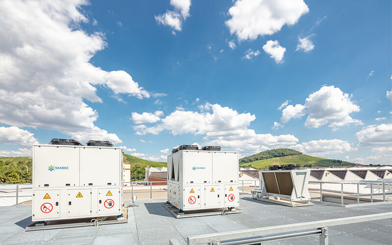 Das ursprüngliche Planungskonzept zum Stand der Ausschreibung sah eine Umsetzung mit dem konventionellen Kältemittel R410A vor. Im Gespräch mit Kunden und Planer wurden vom ausführender Betrieb Kratschmayer Luft-Wärme Klima GmbH aus Waldenburg Vor- und Nachteile des vorgesehenen Kältemittels gegenüber Propan beleuchtet, sodass die Entscheidung schließlich auf die zukunftssichere und nachhaltige Variante Propan fiel. Als entscheidende Kriterien stellten sich die Marktverfügbarkeit und zu erwartende Preisentwicklung heraus. Für eine Anlage mit maximaler Verfügbarkeit braucht es zuallererst die sichere langfristige Verfügbarkeit des Kältemittels.