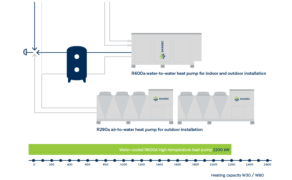 R600a-varmepumper fra Skadec leveres med frekvensstyrte kompressorer, høykvalitets varmevekslere og hastighetsregulerte høyeffektive pumper. Fokuset er alltid på høy produksjonskvalitet.