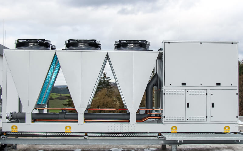 Eine Propan R290 Wärmepumpe mit 400 kW Heizleistung und drei getrennten Kältekreisläufen.