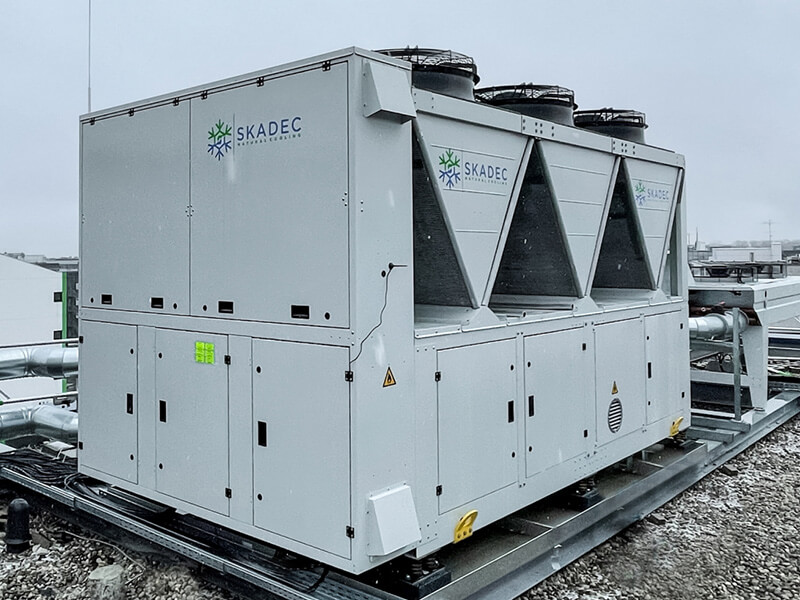 Ein 227 kW Kaltwassersatz mit natürlichem Kältemittel zur Kühlung eines Technikraums.